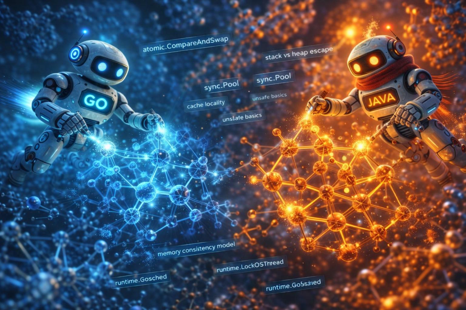 В этой статье мы разберем ключевые низкоуровневые механизмы Go, сравнивая их с аналогичными инструментами в Java. Статья предназначена для Java-разработчиков, которые хотят глубже понять Go, а также для Go-разработчиков, желающих увидеть, как их привычные механизмы устроены в Java. Мы рассмотрим атомарные операции, управление памятью, работу планировщика, unsafe-инструменты и многое другое. Для каждой темы будет объяснение под капотом, примеры кода на Go и Java, советы по использованию и практическое применение.